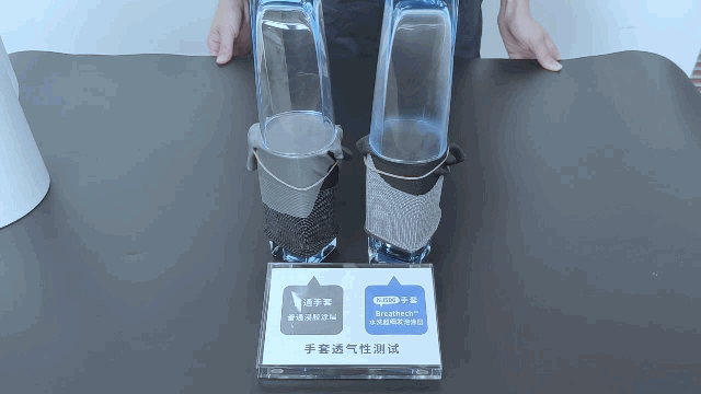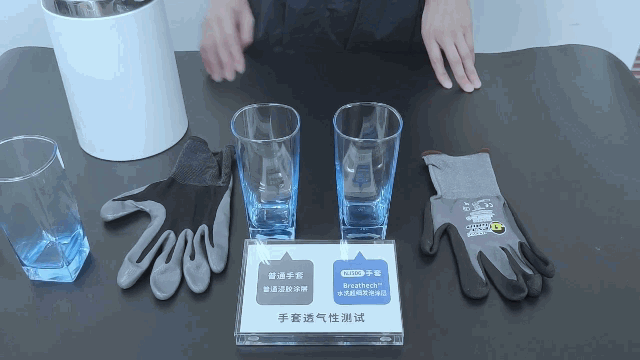 没过多久,NJ506手套上方的水杯内侧充满了水汽