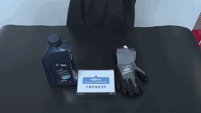 佩戴NJ506手套的手掌部位在接触机油后仍然保持掌部清爽,无油污渗透